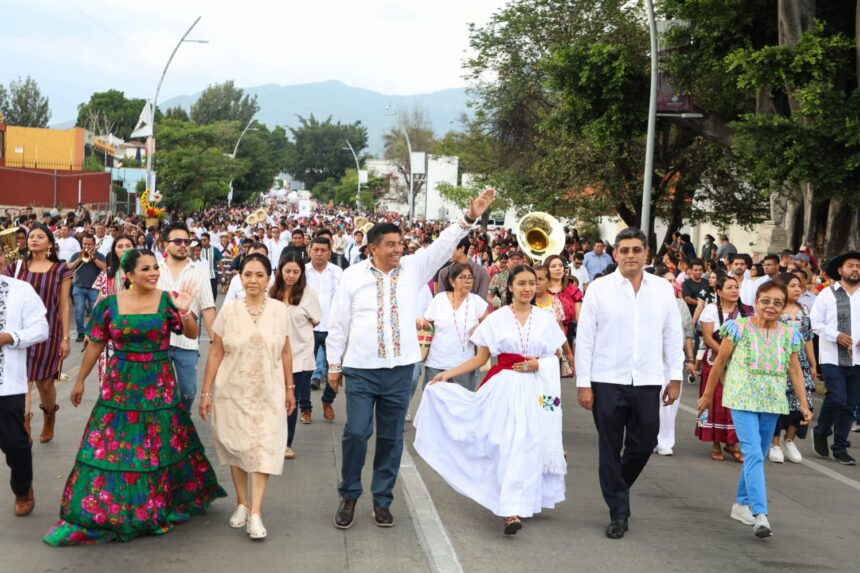 Miles de oaxaqueñas y oaxaqueños se congregaron a lo largo de la calzada Porfirio Díaz, de la avenida Juárez y de la calle de Morelos, desde la fuente de las Ocho Regiones hasta la Plaza de la Danza, para saludar y festejar con las 9 delegaciones participantes, que, con marmotas, música, bailes y cuetes, lucieron sus trajes de gala para anunciar el inicio de la gran fiesta que recupera sus raíces indígenas y populares.